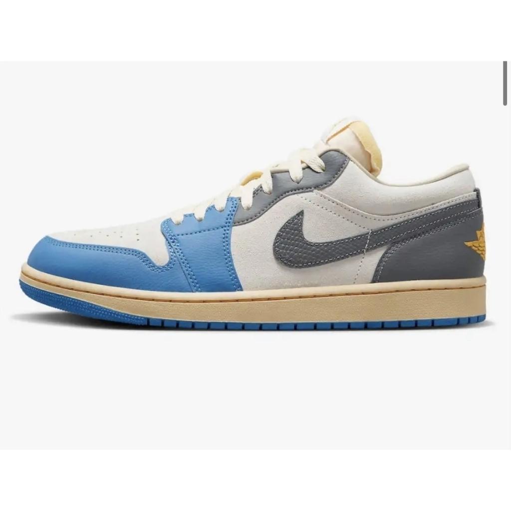 O Tênis Nike Air Jordan 1 Low Vintage UNC Grey é a escolha perfeita para quem busca estilo e conforto em um só produto. Inspirado nas cores clássicas da Universidade da Carolina do Norte, este modelo combina azul UNC e cinza, criando um visual único e sofisticado. O cabedal em couro premium e camurça proporciona durabilidade e um ajuste confortável, enquanto a entressola oferece excelente amortecimento para o uso diário.