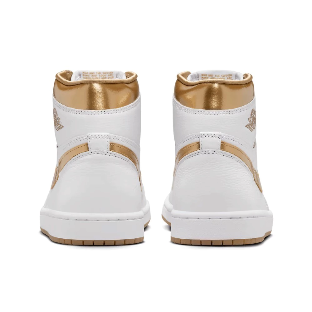 O emblema clássico da Jordan na lateral é um símbolo de autenticidade e prestígio, fazendo deste tênis uma peça chave para colecionadores e entusiastas da moda urbana. Versátil, o Air Jordan 1 Retro High White & Gold complementa desde produções casuais até looks mais elaborados.